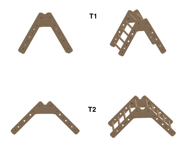 Z této sady postavíte Pikler trojúhelník ve dvou variantách:
