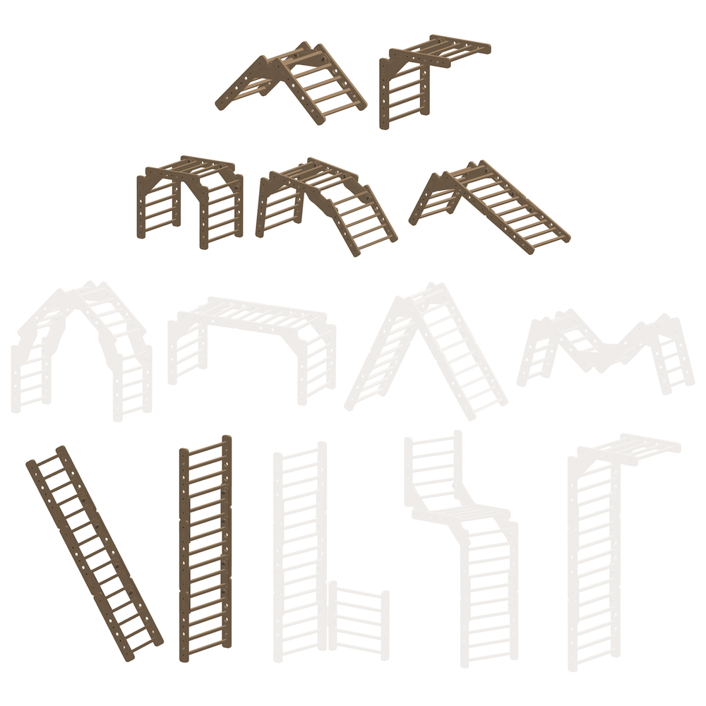 Stavebnice neobsahuje doplněk dvojitá klouzačka, bradla a lezecké desky.