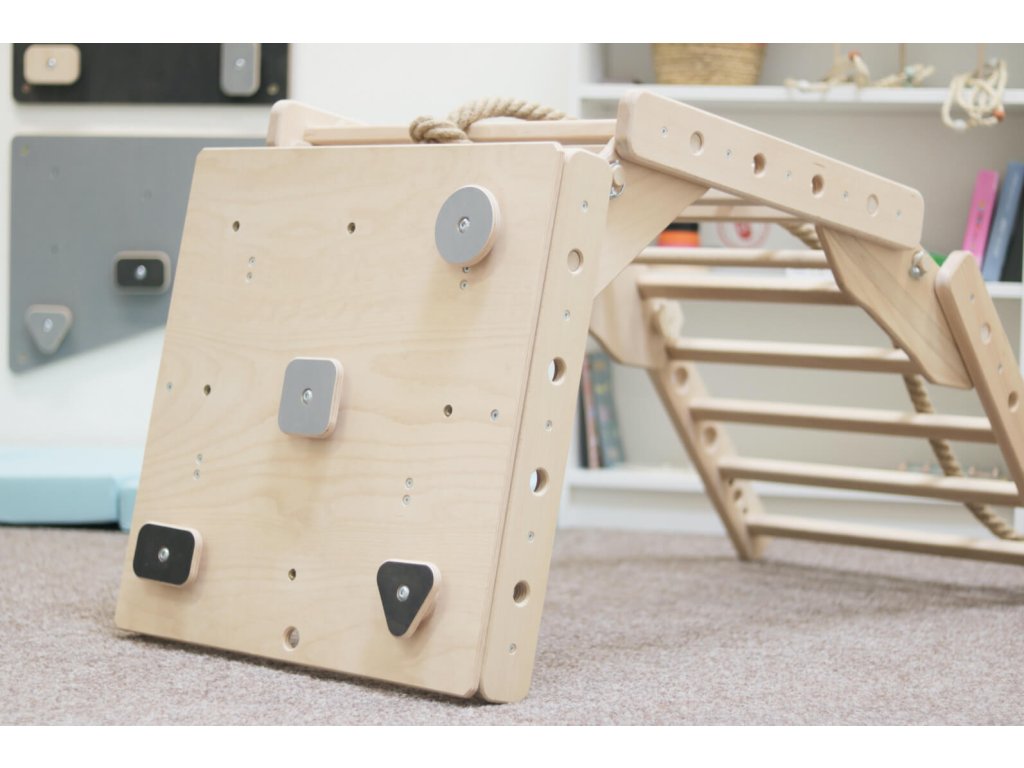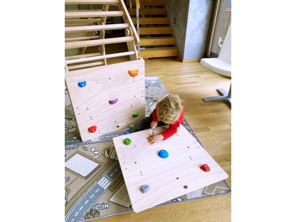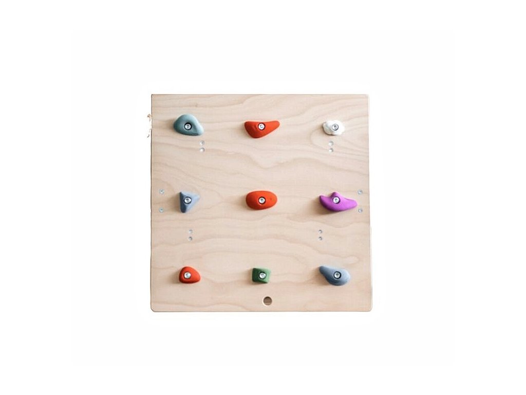 Devět závitových děr v desce (lezecké chyty je nutné dokoupit samostatně tady nebo tady).