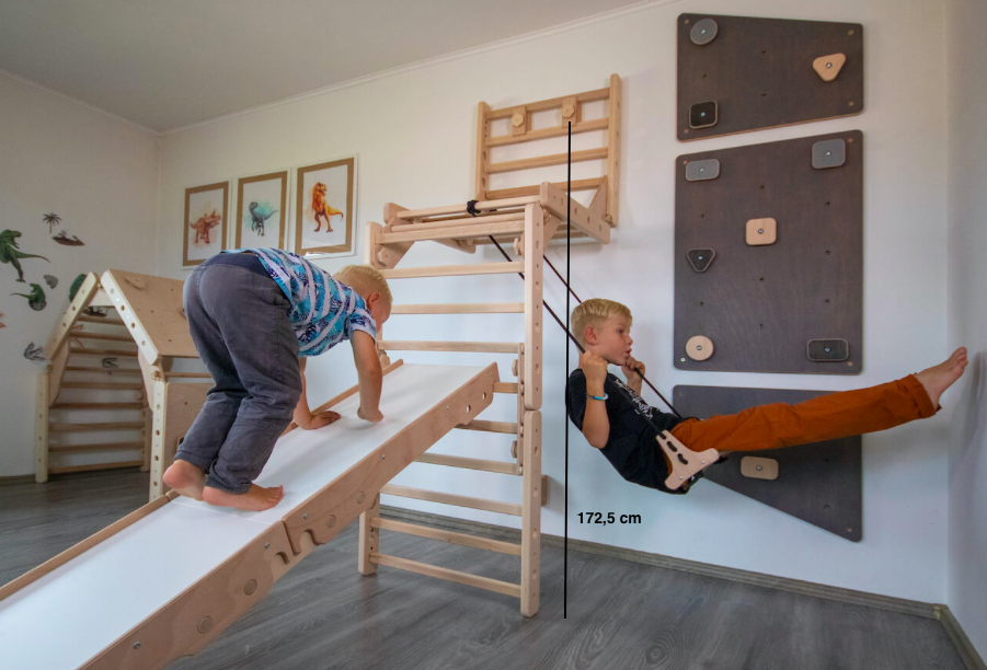Dbejte na to, aby stavba, na kterou balanční desku instalujete, byla stabilní a nehrozilo její převrácení. Desku můžete věšet pouze dospělá osoba, která ji následně zkontroluje tak, že se na ní sama řádně pohoupe.