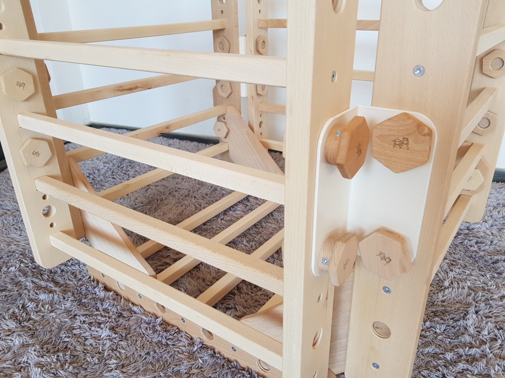 Spojka C1 je navržena tak, aby bylo možné čtvercové stavby uzavřít spojkami T2. Jedna spojka C1 dokáže vyřešit problémy v malém prostoru, kde nelze skluzavku umístit kolmo se stěnou, na kterou je stavba montována.