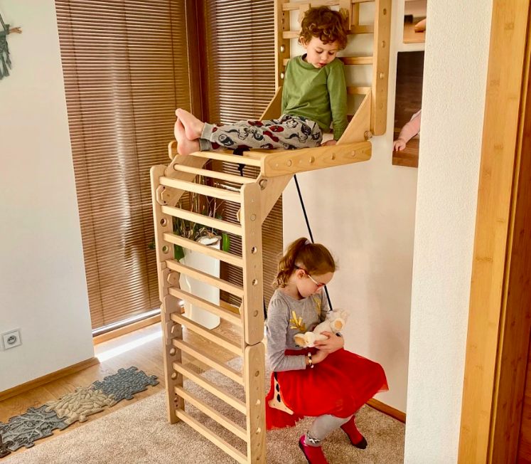 Ze stavby jednoduše postavíte i malý Pikler trojúhelník nebo třeba oblíbenou stavbu Klikař na obrázku níže.