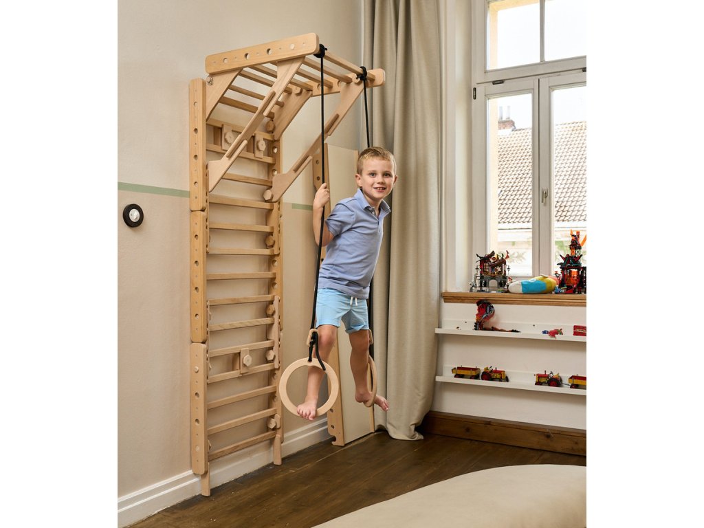 Žebřiny s hrazdou - ideální stavba pro zavěšení kruhů nebo houpačky poma